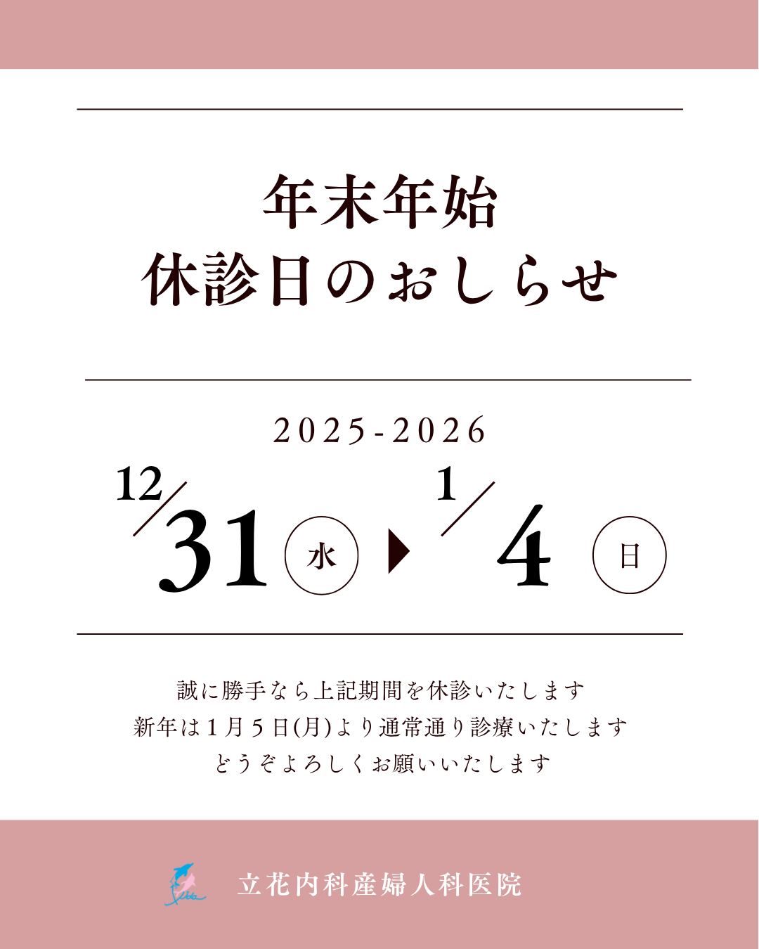 日頃より医療法人社団立花内科産婦人科医院のホームページをご覧いただき、誠にありがとうございます。